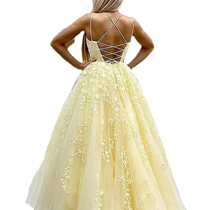 Elegant A-Line Design: Embrace sophistication with our A-line evening dresses featuring spaghetti straps. The flattering silhouette flows gracefully, making it perfect for any formal occasion. Whether you're attending a quinceañera or prom, this dress ensures you make a stunning entrance.