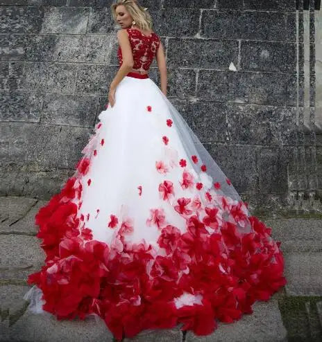 Striking Contrast: The striking contrast of white and red adds a unique flair to your special day. The vibrant floral details create a stunning visual impact, ensuring you stand out while celebrating your love.