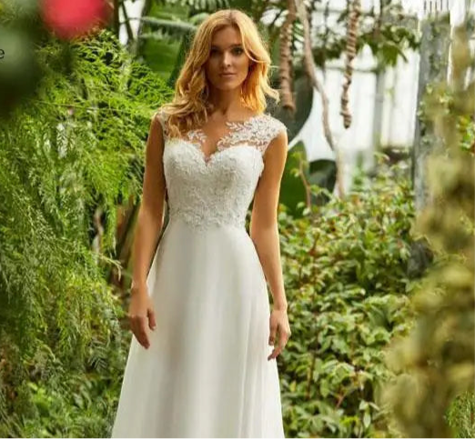 This exquisite A-line wedding dress seamlessly combines classic elements with captivating details. With its timeless silhouette, luxurious lace appliques, and focus on comfort, this gown promises to make you feel like the epitome of elegance on your wedding day.