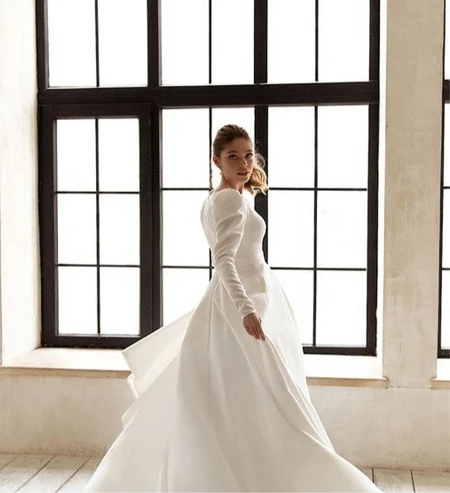 The combination of a classic silhouette, elegant V-neckline, and soft, flowing satin creates a wedding dress that is both timeless and romantic. Quince Dress's Classic V-Neck Long Sleeve Satin A-Line Wedding Dress is sure to make you feel like the most beautiful version of yourself on your wedding day.