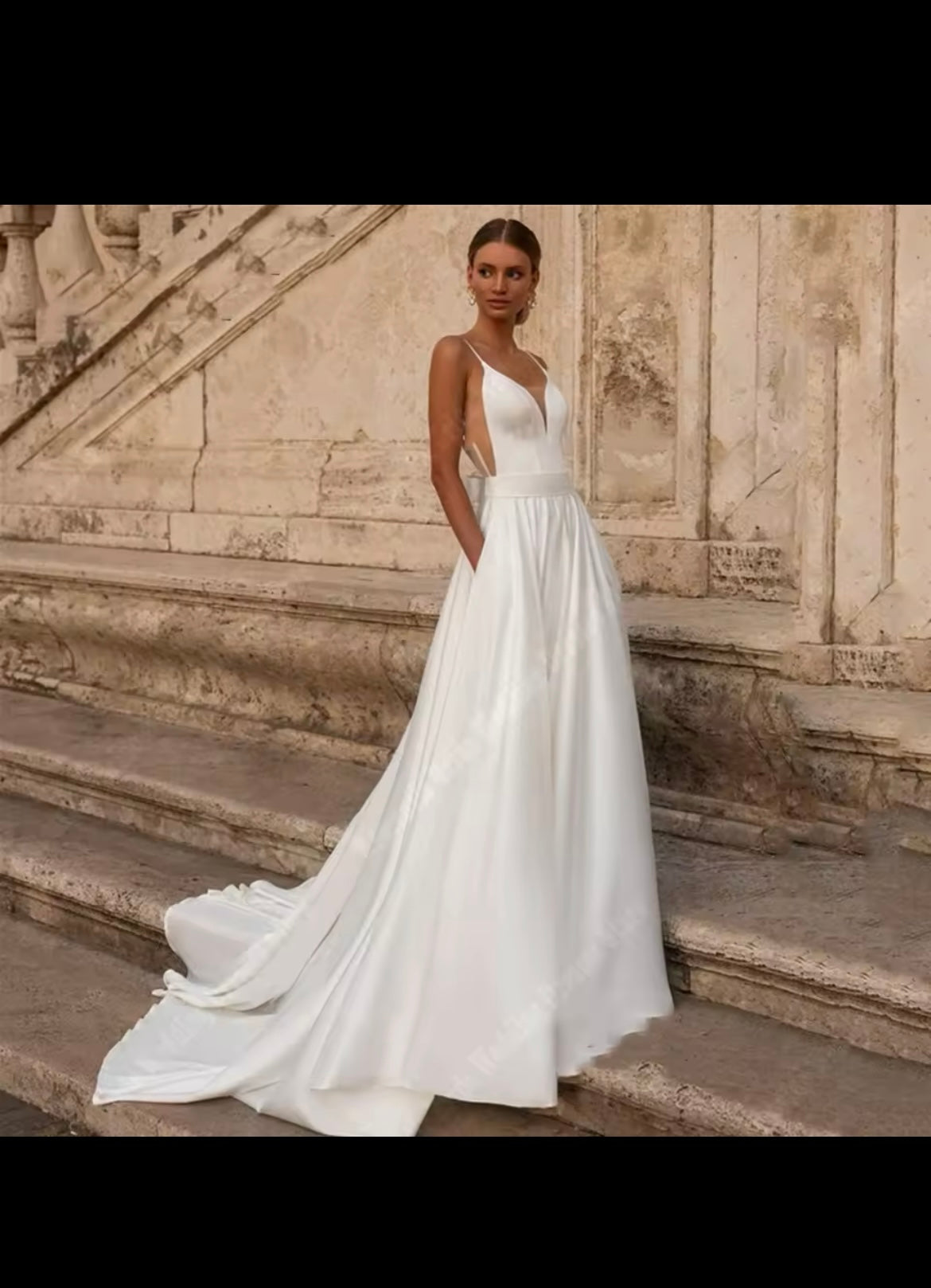 Elegant Women A-Line Wedding Dresses: Discover timeless elegance with our A-line wedding dress, perfect for your special day. Crafted with exquisite lace and flowing fabrics, it features a flattering silhouette that enhances your natural beauty. Available in various sizes and customizable options to ensure a perfect fit for every bride.