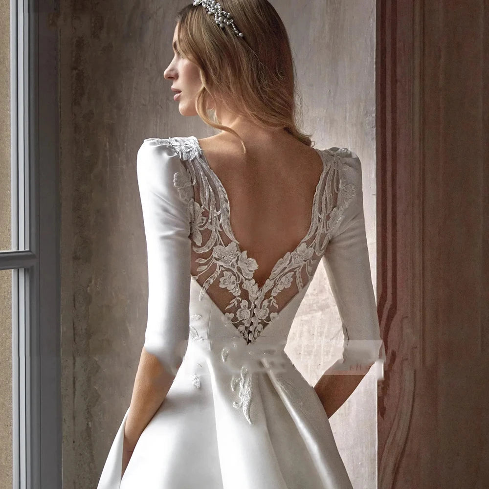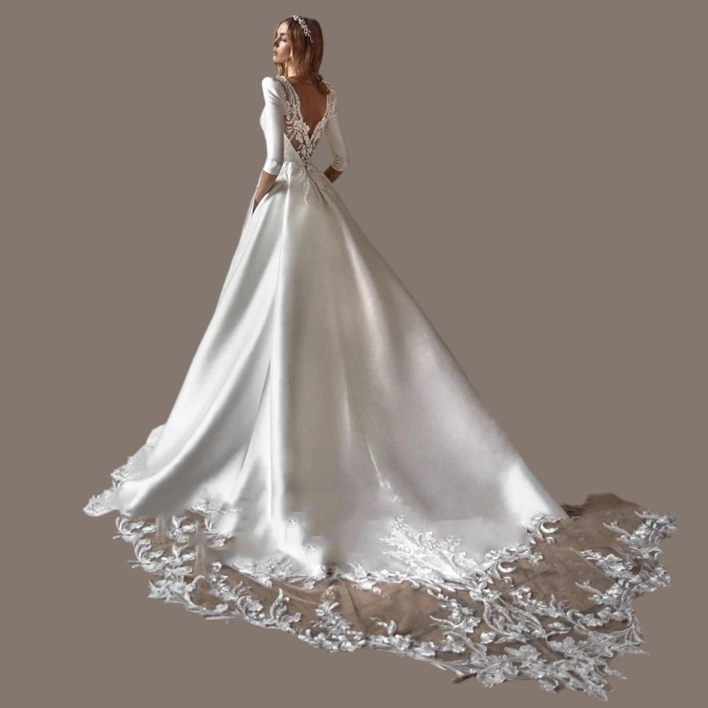 Exquisite A-Line Women Wedding Dresses: Discover elegance in every stitch with our Exquisite A-Line Women Wedding Dress. Crafted with meticulous attention to detail, this gown features delicate lace appliques that adorn the bodice and cascade gracefully onto the flowing skirt. Perfect for making a statement on your special day, it combines timeless beauty with modern sophistication. Available in various sizes, it ensures a perfect fit for every bride-to-be.