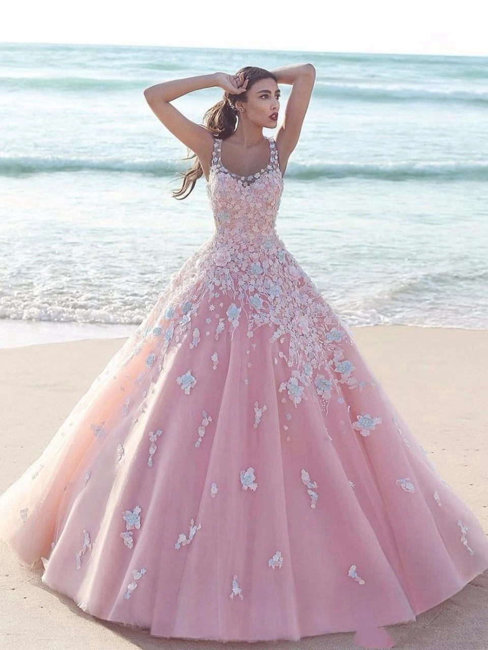 Elegant Ball Gown: Step into your celebration with this stunning pink ball gown. Crafted from luxurious tulle, it flows gracefully, ensuring you feel like a princess on your special day. The intricate design and attention to detail make it a perfect choice for a memorable Quinceañera.