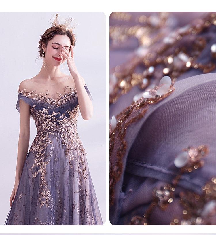 Beautiful Appliques: Featuring exquisite appliques, this gown elevates your evening look. The delicate embellishments create a romantic and feminine silhouette, enhancing your natural beauty. Perfect for those who appreciate artistry in fashion.