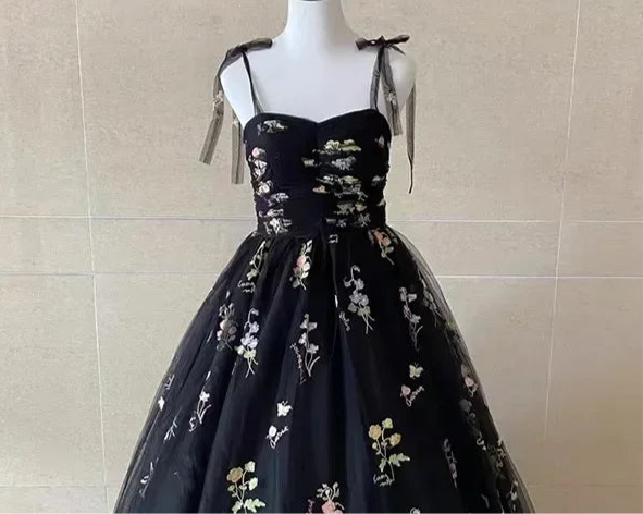 This is a beautiful dress. Powder Black with embroidered flowers. Wearing it makes you feel like a princess!!!