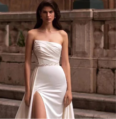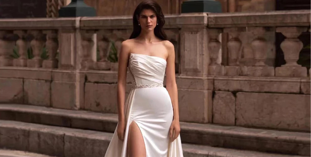 With its clean lines and luxurious fabric, this dress is the epitome of simple sophistication. It's perfect for the bride who wants a timeless look that will never go out of style.