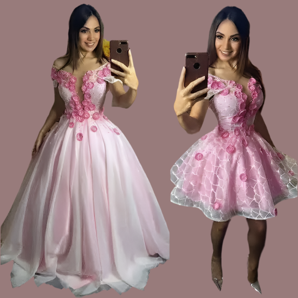 Short Party Dress Option: Not just a ball gown, this dress also features a chic short party dress option! Ideal for lively celebrations, the shorter style lets you move freely while still keeping the elegance intact. Celebrate in style and comfort with this versatile gown that suits every part of your celebration.