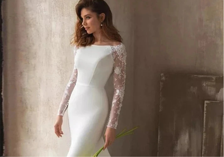 Whether you seek a simple yet stunning look or desire a touch of romantic flair, the "Classic Lace Long Sleeve Mermaid Wedding Dress" is a timeless treasure that will leave you breathless.
