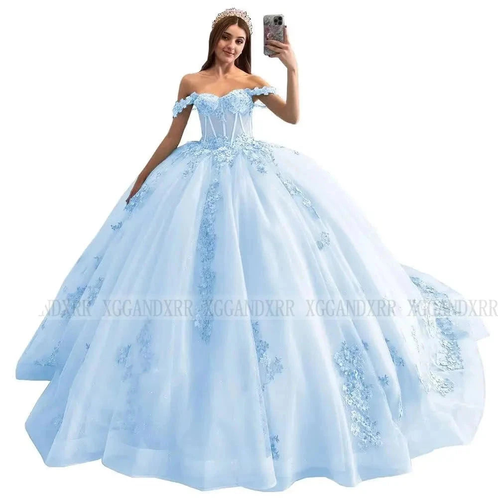 Elegant Design: This stunning light green ball gown combines elegance and fun for your special day. With its off-shoulder corset design, it accentuates your figure while providing a timeless silhouette. The colorful appliqués add a vibrant touch, making this dress perfect for a memorable quinceañera celebration.