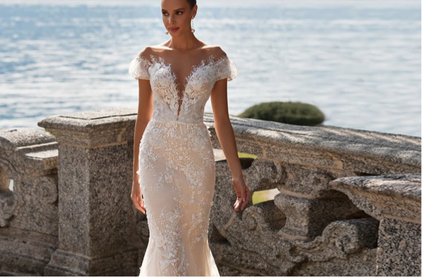 Lace Sequined Mermaid Graceful Wedding Dress: Shimmer with every step in this Lace Sequined Mermaid Graceful Wedding Dress. The intricate lace overlay is adorned with sequins, adding a touch of sparkle and glamour to your bridal look. Ideal for brides seeking a blend of classic and modern style.