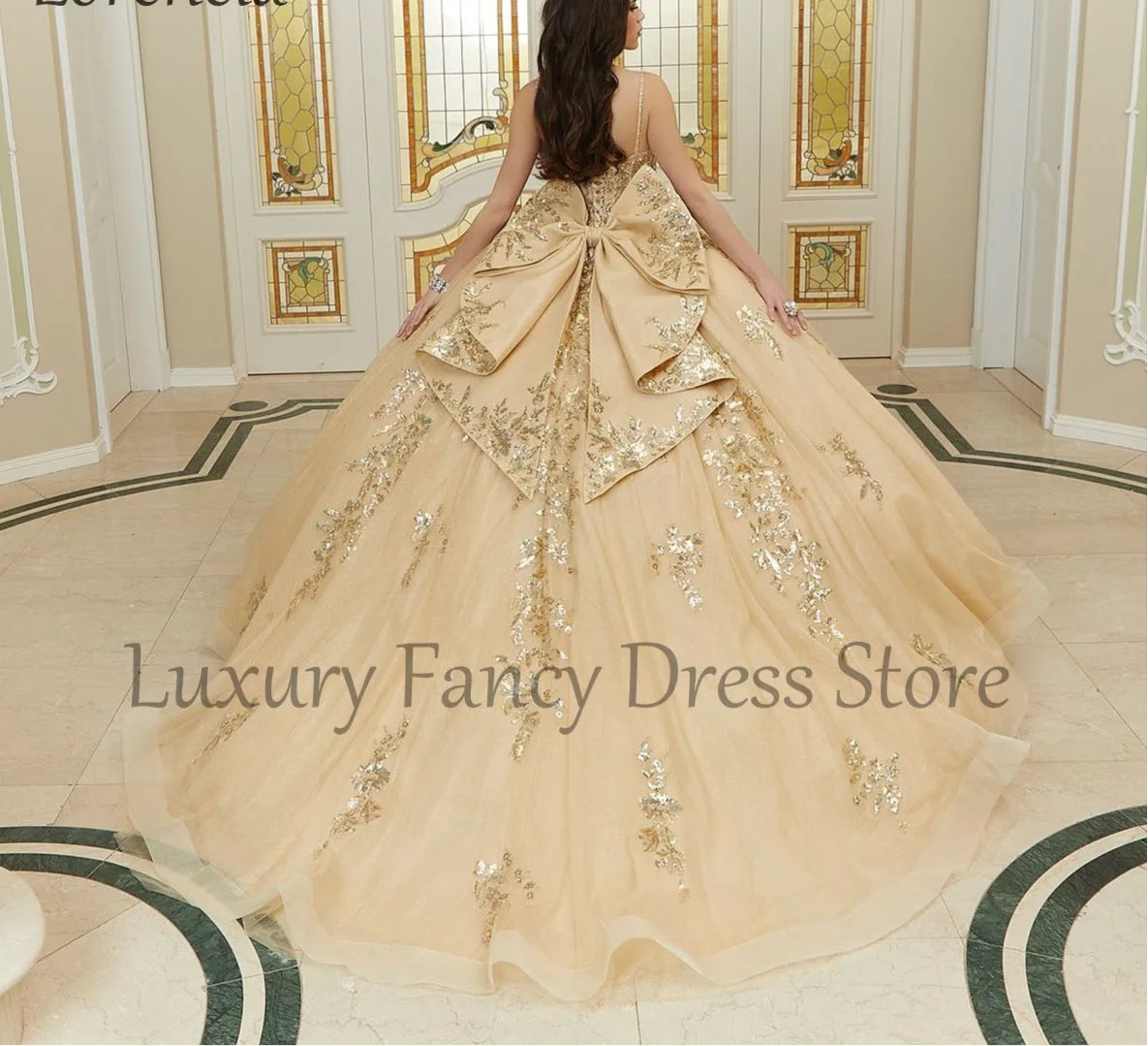 Mexican Champagne Quinceanera Dress: Embrace elegance and tradition with our Mexican Champagne Quinceanera Dress, perfect for celebrating the transition into womanhood. This exquisite ball gown features delicate butterfly appliques and intricate beading that shimmer with every movement.