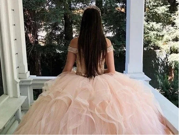 Elegant Off-Shoulder Design: This stunning organza ball gown features an elegant off-shoulder silhouette, perfect for showcasing your shoulders and collarbone. Designed for special celebrations, it combines timeless beauty with modern flair, making it ideal for Quinceañeras and Sweet 16 parties.