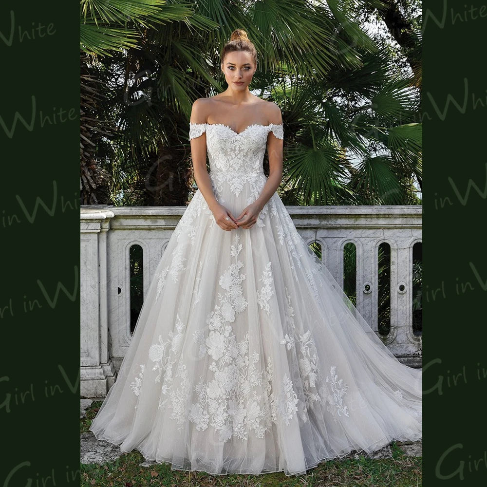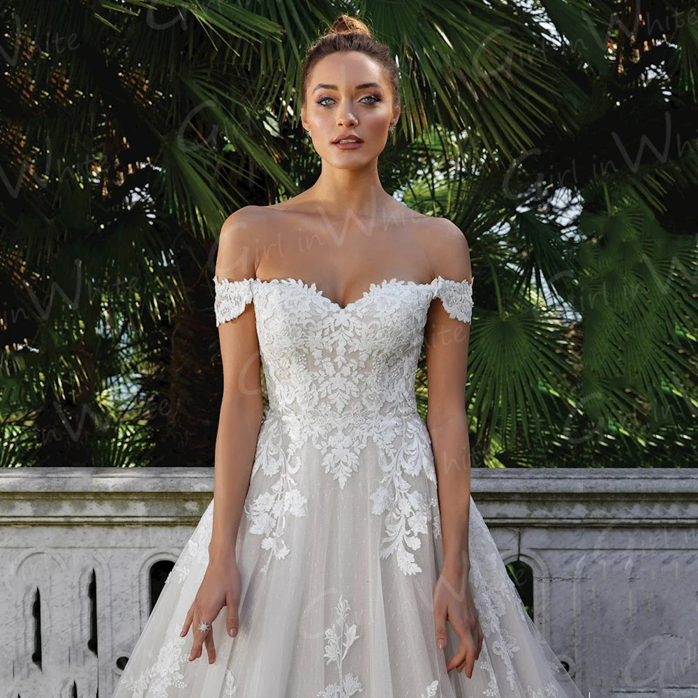 Elegance Unveiled Embrace timeless grace in our Off Shoulder Wedding Gown, adorned with exquisite flower appliques