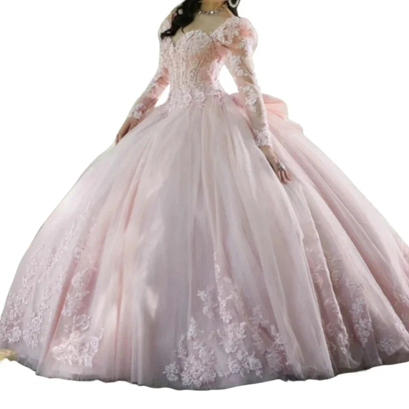 Elegant Design: This Princess Pink Quinceañera dress is designed for a stunning entrance. The ball gown silhouette with long sleeves brings a classic yet modern touch. It is ideal for celebrating Sweet 16 or a Quinceañera, making you feel like royalty on your special day. The rich pink color adds a soft yet elegant vibe, perfect for making a statement.