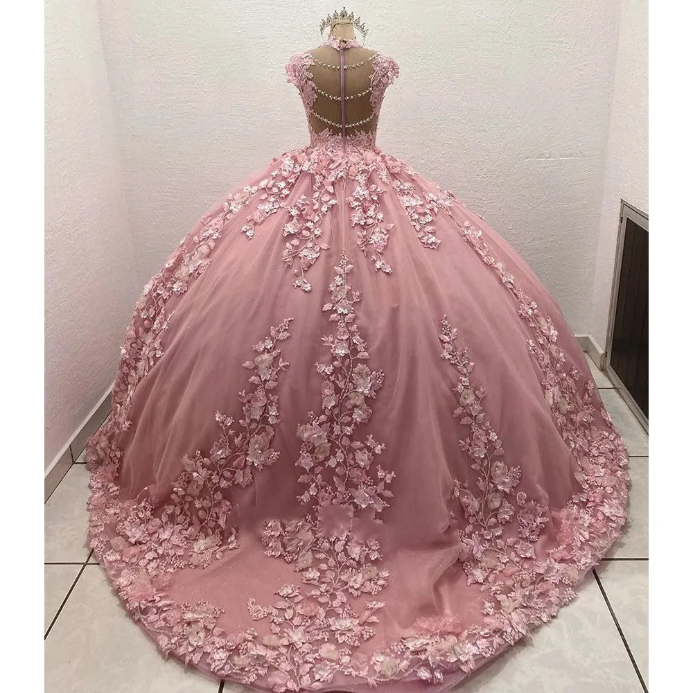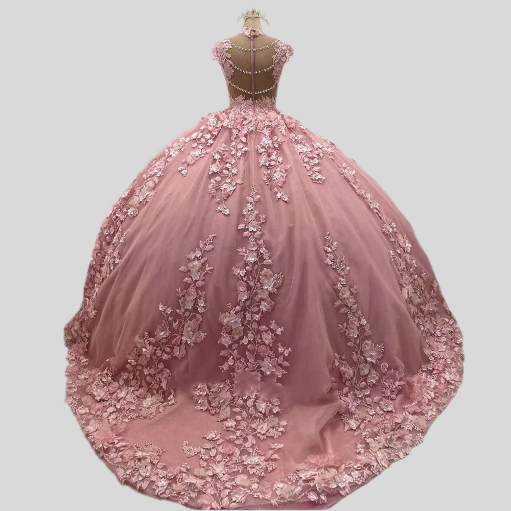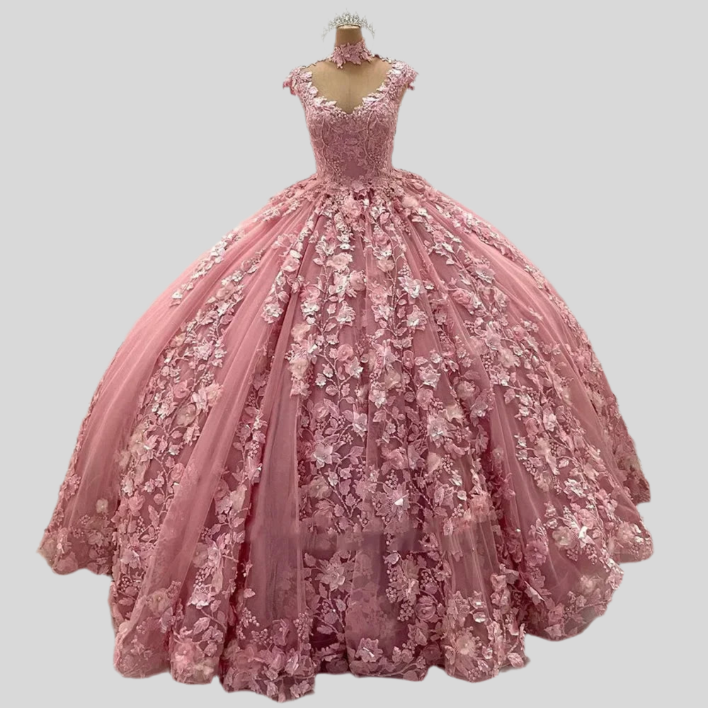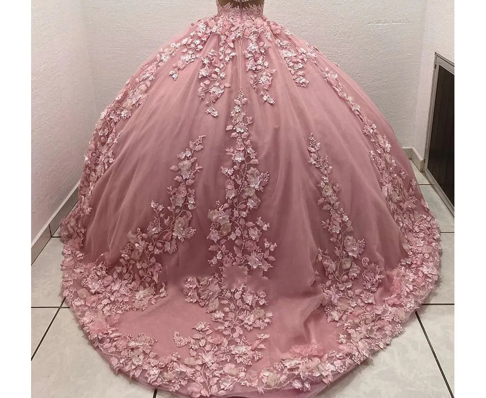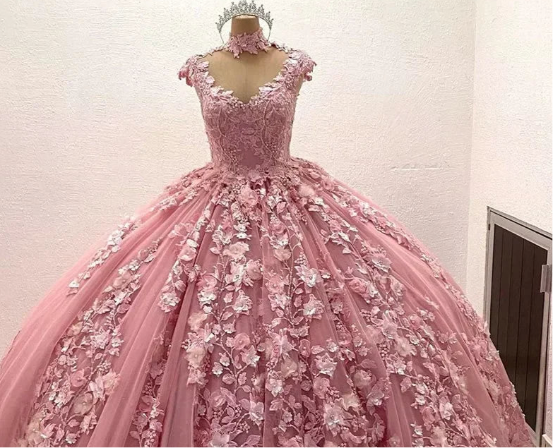 Elegant Pink 3D Floral Design: This exquisite Pink 3D Flowers Quinceañera Dress is a breathtaking choice for any young lady's special day. The dress features stunning three-dimensional floral appliqués that cascade beautifully down the bodice, adding a touch of romance and elegance. Each flower is meticulously crafted, showcasing intricate details and luxurious textures that catch the light and shimmer with every movement. The soft pink hue enhances the overall feminine charm, making it the perfect dress for a princess. The luxurious fabric drapes gracefully, ensuring comfort throughout the celebration. Ideal for a birthday party or a memorable Quinceañera event, this dress will make any girl feel like the star of the show.