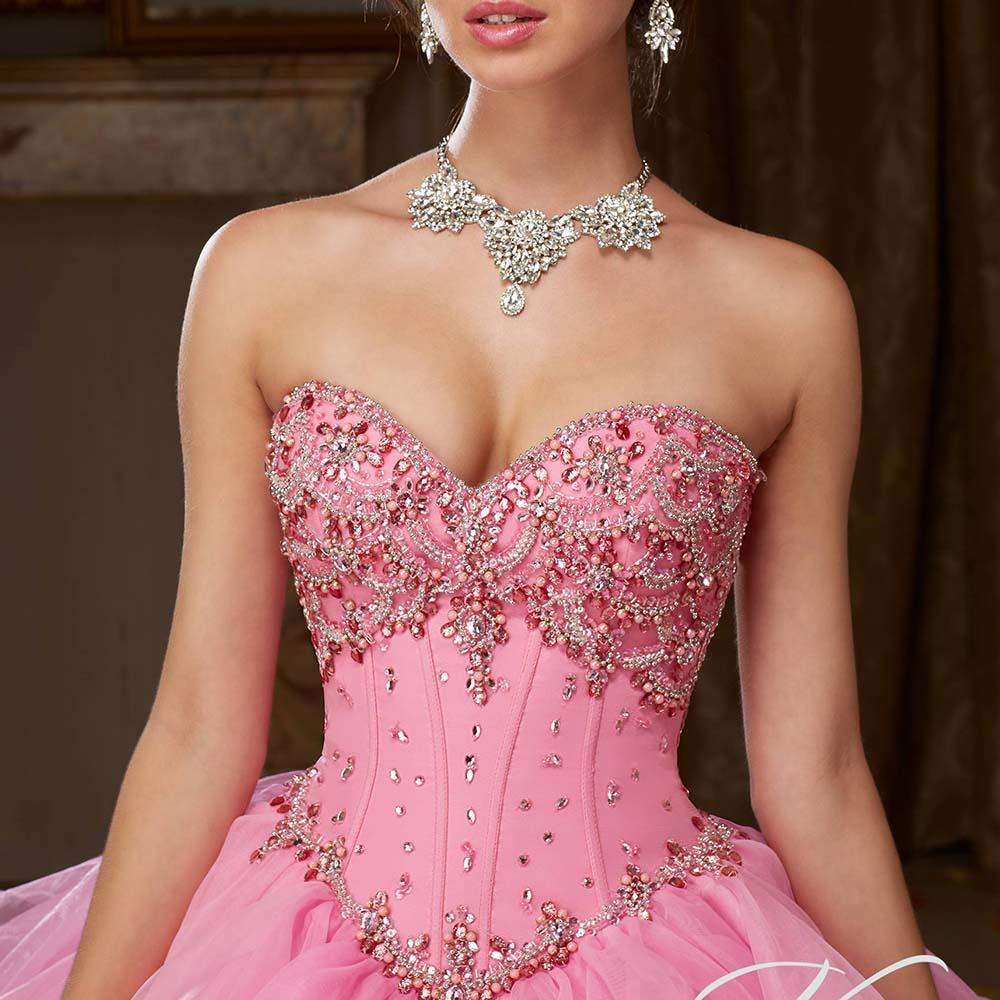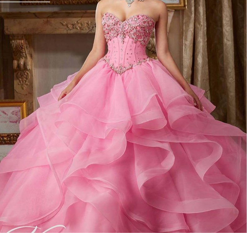 Sparkling Elegance: This stunning pink quinceañera dress features intricate beading that catches the light beautifully, making your celebration unforgettable. The sweetheart neckline adds a romantic touch, while the ball gown silhouette provides a classic and elegant look for your special day.