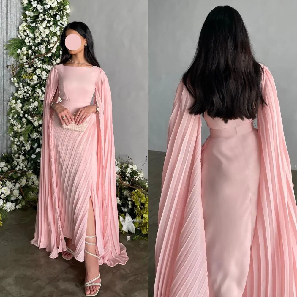 Square Neck Pink Formal Dress for Women: Make a statement with this striking pink evening dress. The square neckline adds a chic, modern touch, and the long sleeves offer a sophisticated feel for any formal event. Crafted with high-quality materials, the dress features a zipper back for a seamless fit and an elegant flow. Whether it's for a prom, wedding party, or a formal evening out, this dress ensures you’ll look both classy and fashionable. The design perfectly reflects Saudi Arabia’s elegant taste in formal wear, making it ideal for those who love a luxurious look.