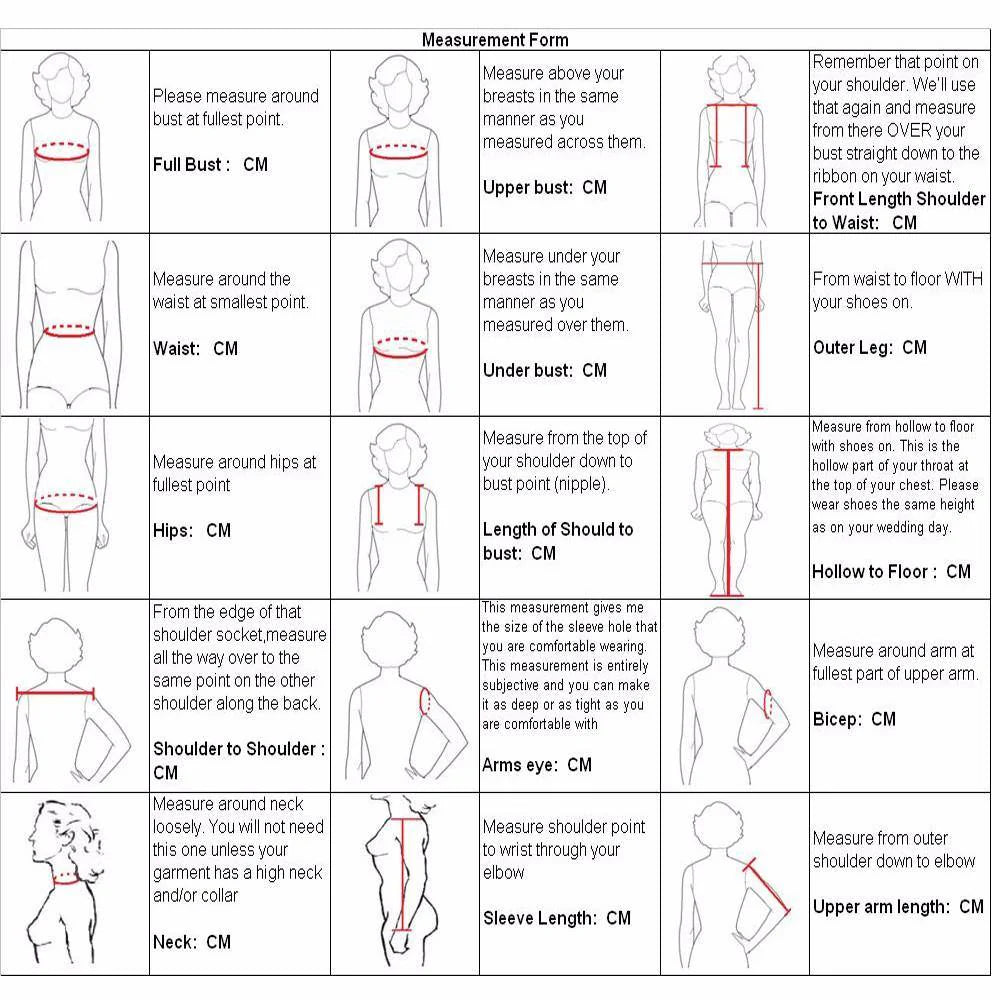 A perfect-fitting dress starts with perfect measurements. Before ordering a made-to-measure dress from DHgate.com, we strongly encourage finding a professional local tailor who can help you measure accurately. Here, we'll show you which measurements are needed and how to correctly take them. Warning: measuring yourself at home is trickier than you think! For best results, always have your measurements taken by a professional local tailor.