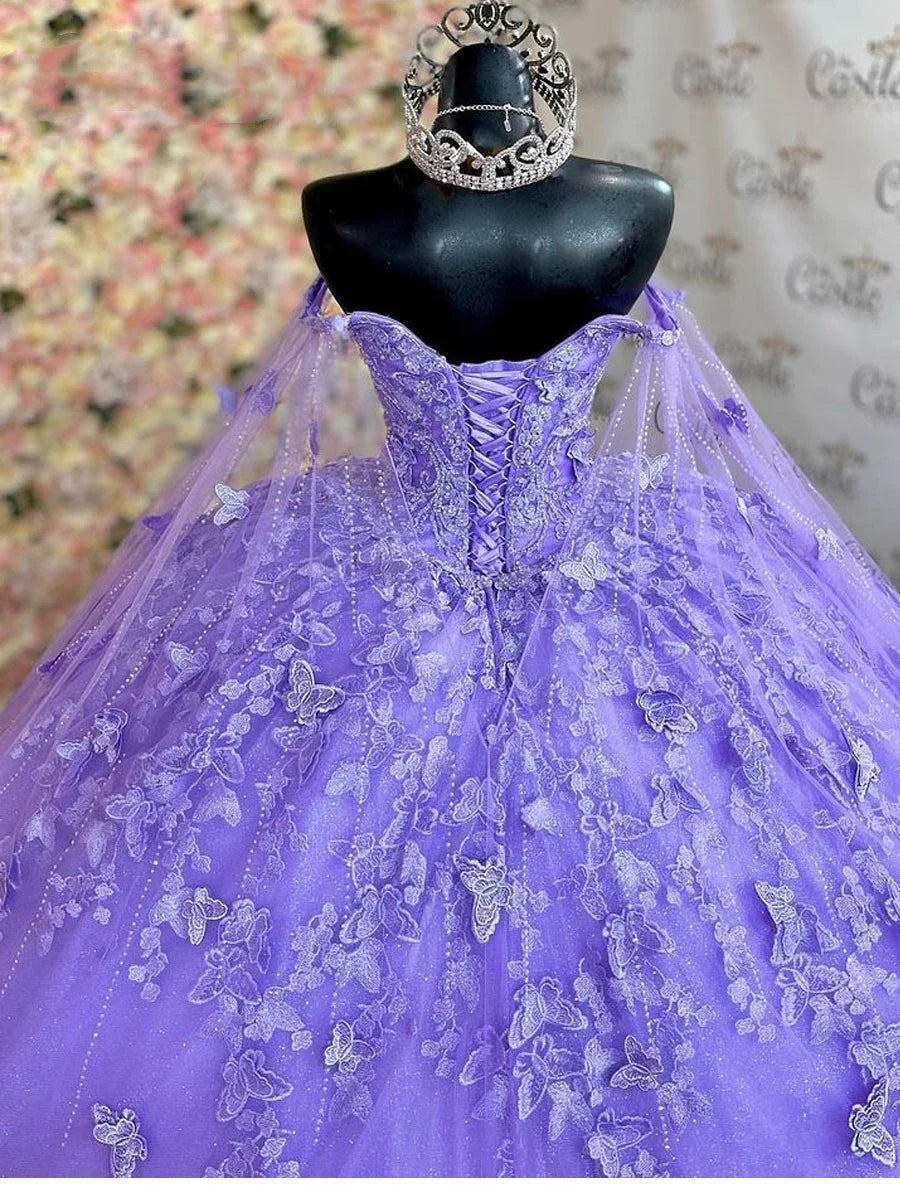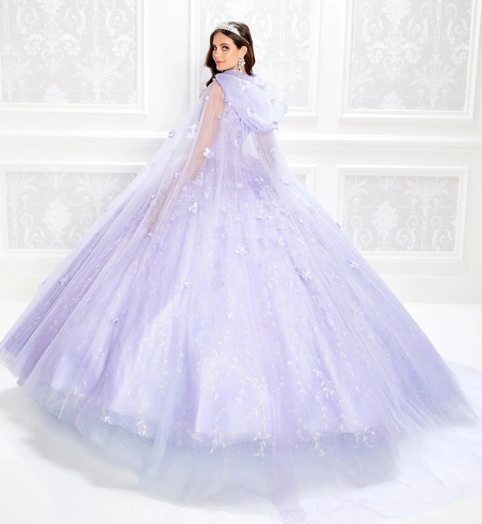 This dress is more than just a garment, it's a statement piece that marks a momentous occasion in your life. Don't settle for anything less than perfection. Order your Lace Applique Floor Length Quinceañera Dress with Cape today and create memories that will last a lifetime!