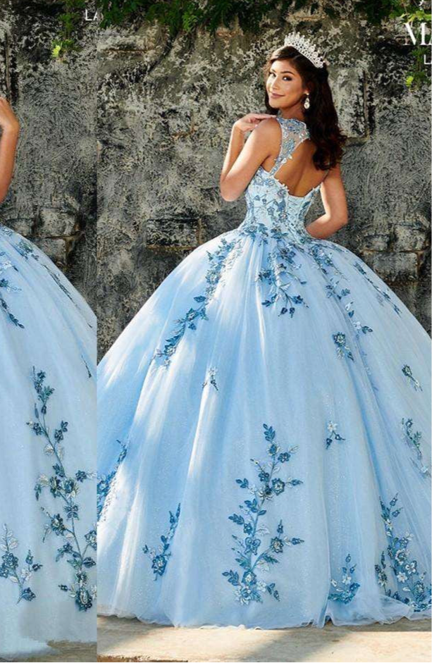 Enchanting Design: This beautiful sky blue gown is designed for the princess in you. With intricate bead detailing and a flowing tulle skirt, it creates a magical look that will leave everyone in awe. Celebrate your Sweet 16 with style and sophistication!