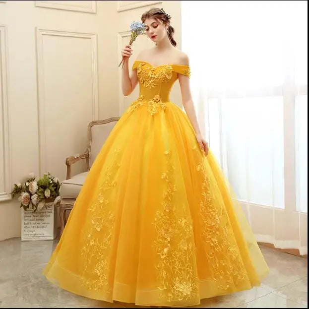 Versatile Color Options: Express your unique personality with our stunning selection of 12 colors. From classic gold to vibrant hues, each Luxury Gold Lace Party Vestido offers a distinctive charm. Pair it with your favorite accessories to create a personalized look that reflects your style. These gowns are perfect for quinceañeras and other formal celebrations.